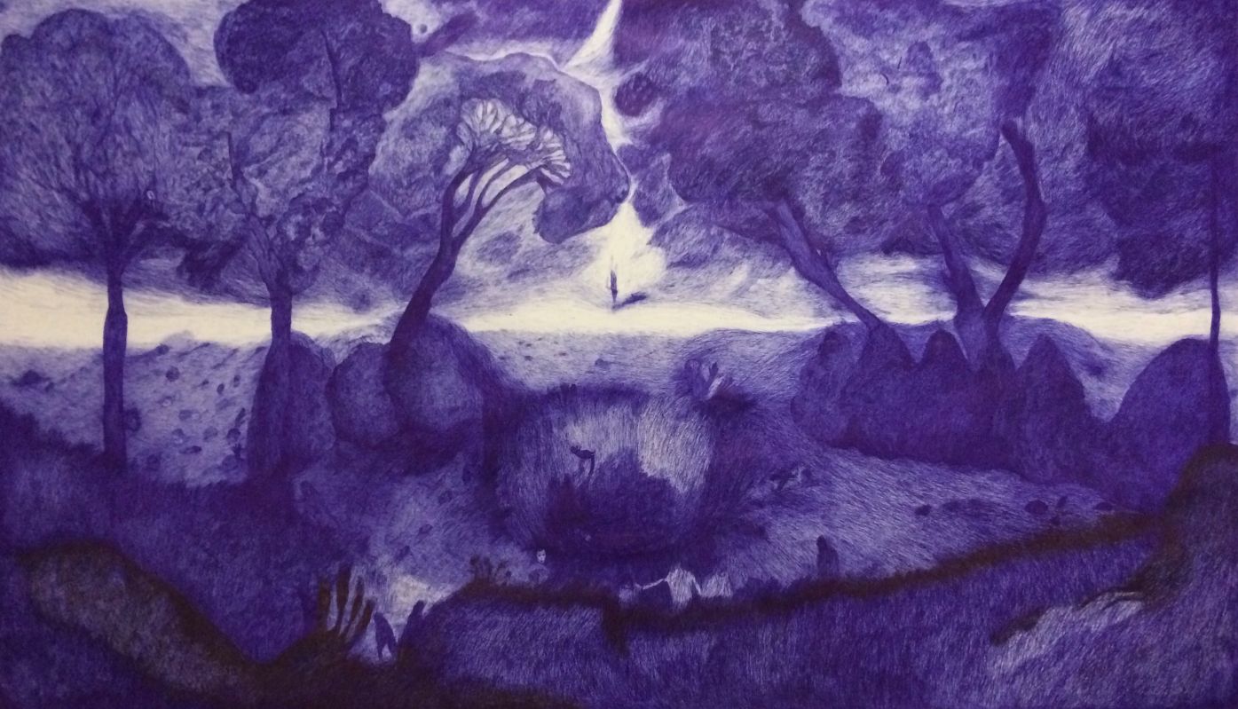Reg. 21. Mª Pilar García de Consuegra Romero. Sin título, 2019.Bolígrafo sobre papel, 112 x 194 cm.