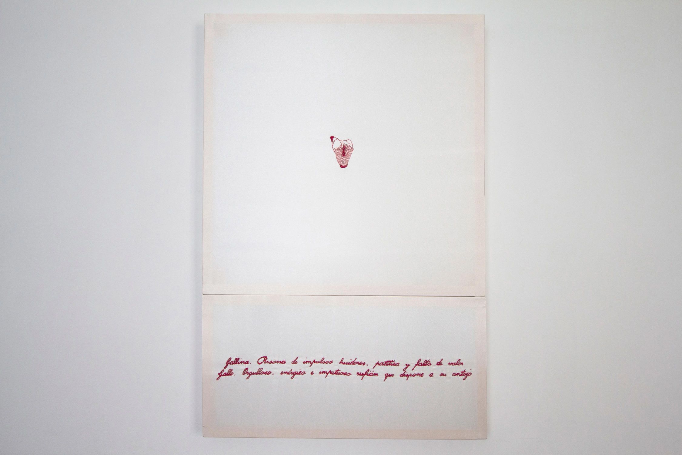 Reg. 89 Garazzi Lara Icaza Coracoes das bestas. Bordado rojo metalizado sobre satén blanco, serie de 9 dípticos de 50 x 50 cm y de 30 x 50 cm.