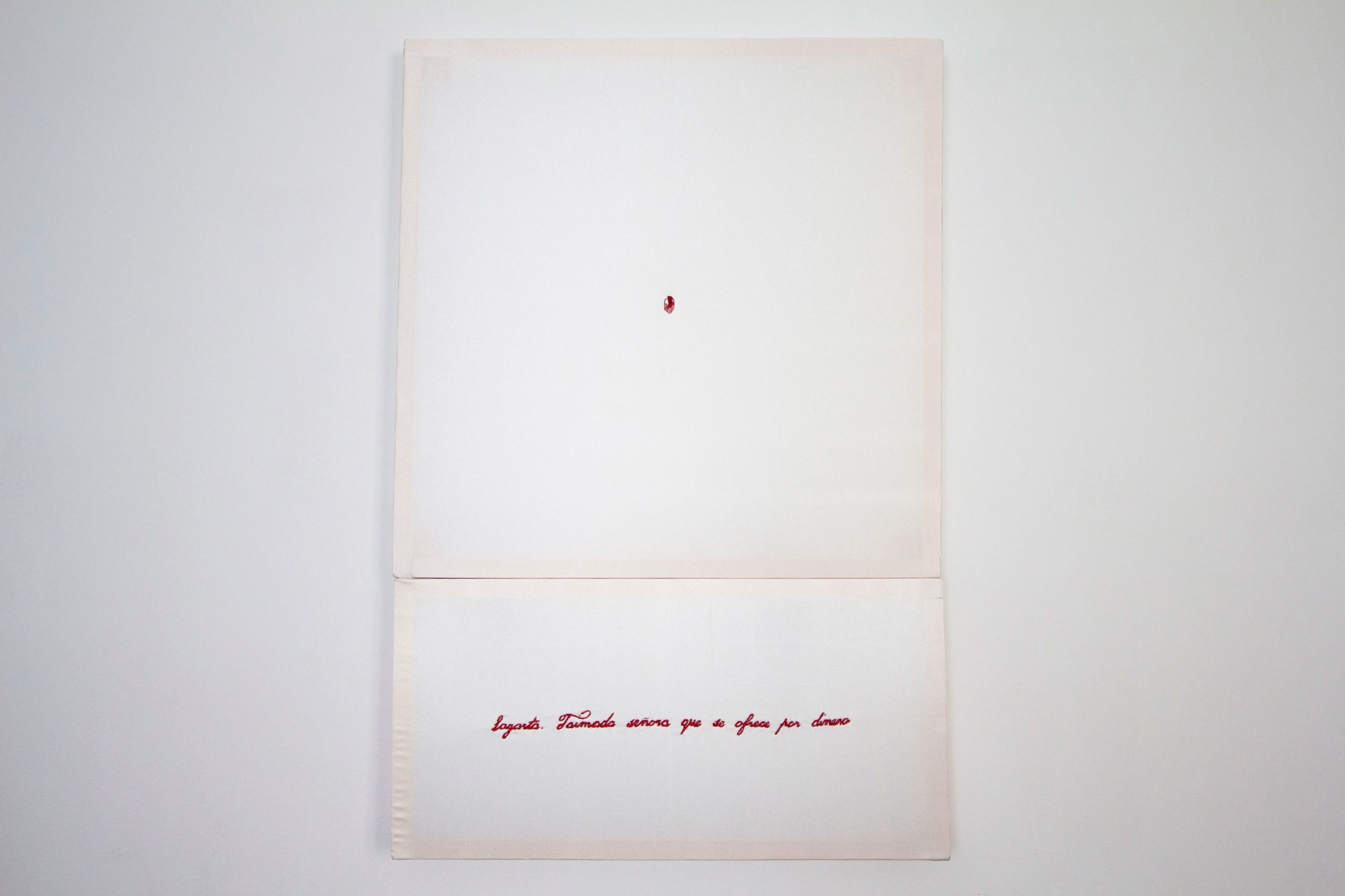 Reg. 89 Garazzi Lara Icaza Coracoes das bestas. Bordado rojo metalizado sobre satén blanco, serie de 9 dípticos de 50 x 50 cm y de 30 x 50 cm.